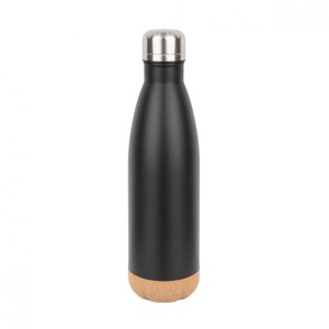 Butelka termiczna o podwójnych ściankach, wykonana ze stali nierdzewnej. Dolna część butelki została oklejona korkiem.