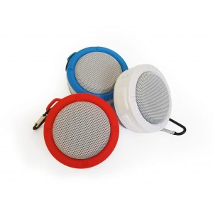 Głośnik z karabińczykiem i przyssawką — możesz go umieścić praktycznie wszędzie i cieszyć się muzyką.